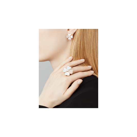 Cosmos earrings, small model Rose gold, Diamond, Mother-of-pearl