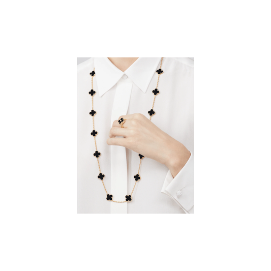 Vintage Alhambra ring Yellow gold, Diamond, Onyx