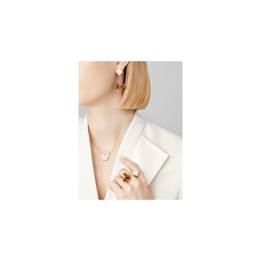 Lucky Alhambra butterfly pendant Yellow gold, Tiger Eye