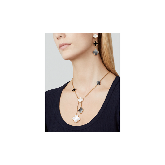 Magic Alhambra earrings 2 motifs White gold Diamond Onyx