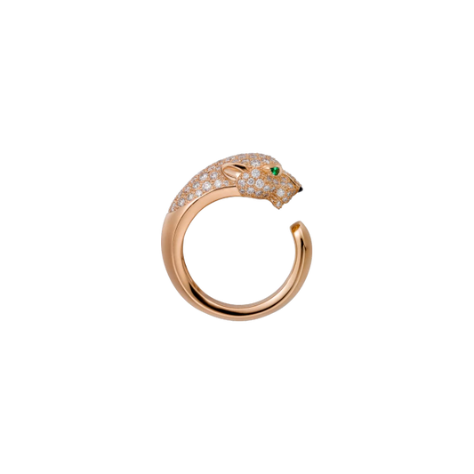 PANTHÈRE DE CARTIER RING PINK GOLD, DIAMONDS, EMERALDS, ONYX