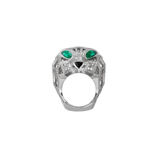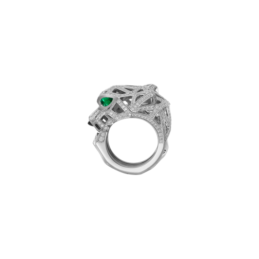 PANTHÈRE DE CARTIER RING WHITE GOLD, EMERALDS, ONYX, DIAMONDS