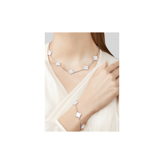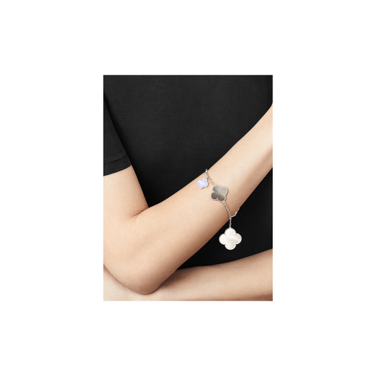Magic Alhambra bracelet, 5 motifs White gold, Chalcedony, Mother-of-pearl