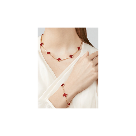 Vintage Alhambra bracelet, 5 motifs Yellow gold, Carnelian