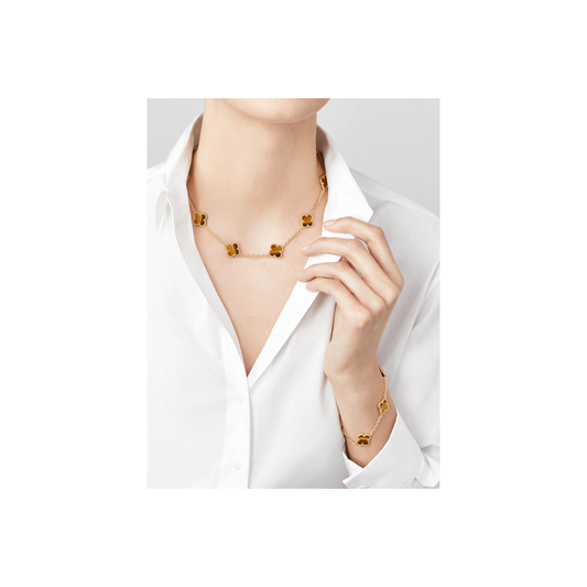 Vintage Alhambra bracelet, 5 motifs Yellow gold, Tiger Eye