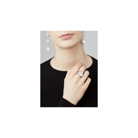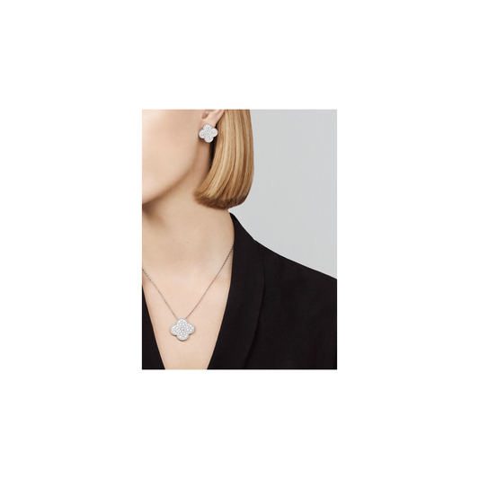 Magic Alhambra earrings, 3 motifs White gold, Diamond