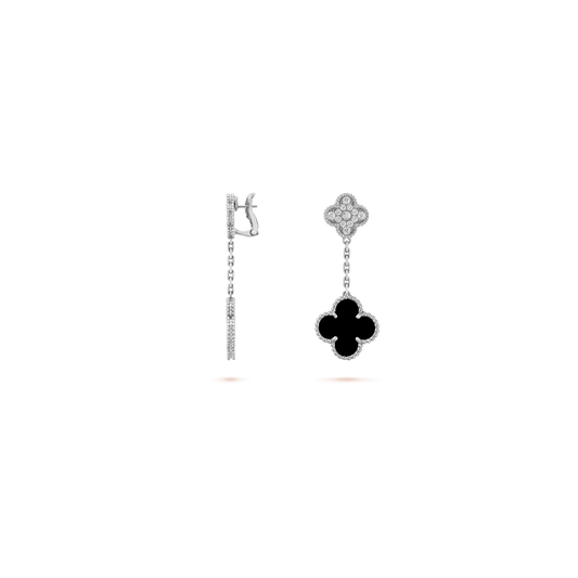 Magic Alhambra earrings 2 motifs White gold Diamond Onyx