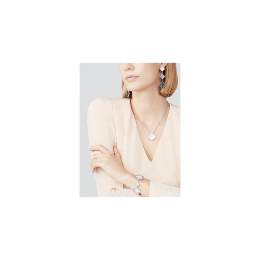 Magic Alhambra earrings, 3 motifs White gold, Chalcedony, Mother-of-pearl
