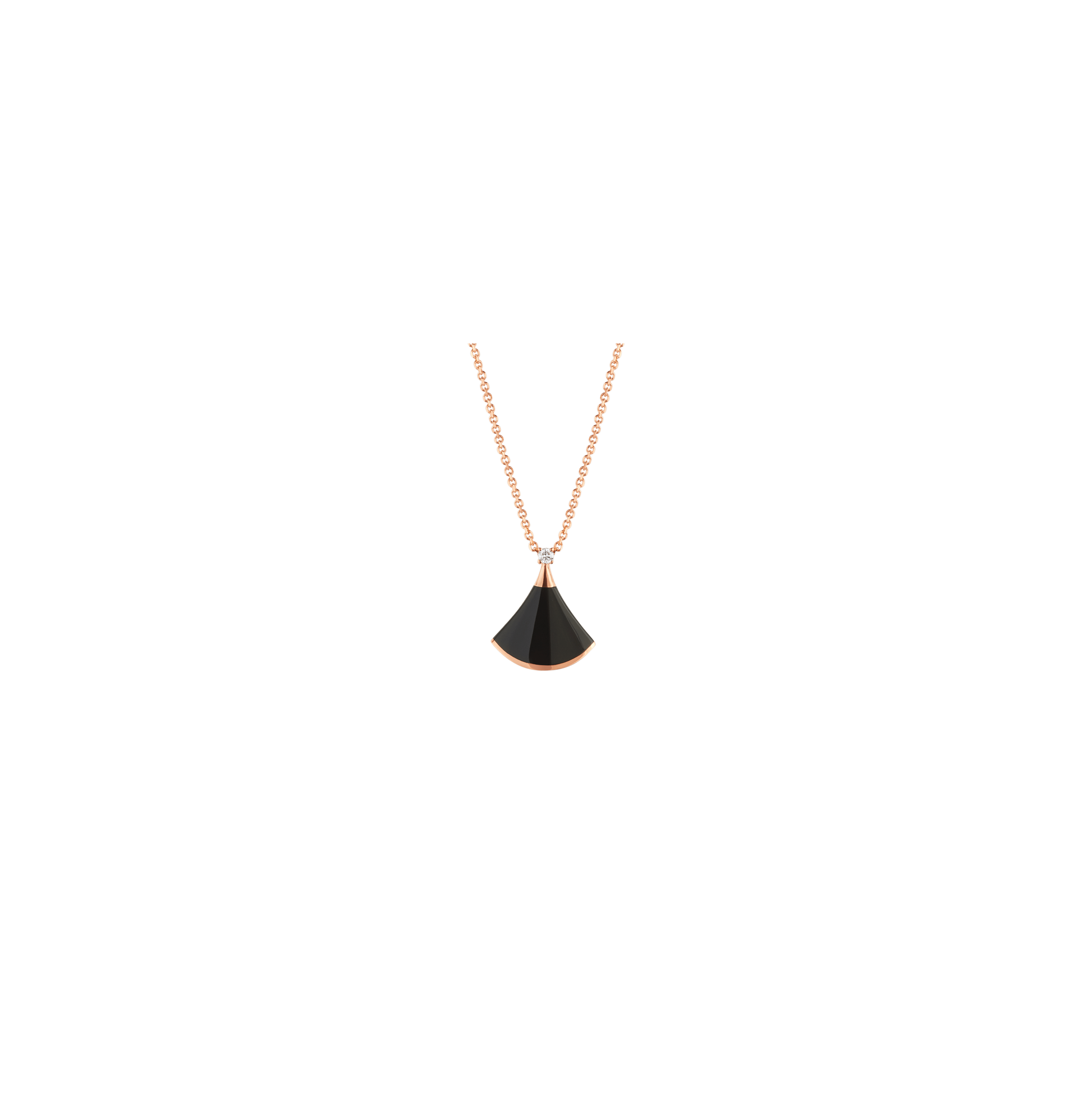 DIVAS' DREAM necklace in 18 kt rose gold with 18 kt rose gold pendant set with onyx and one diamond.