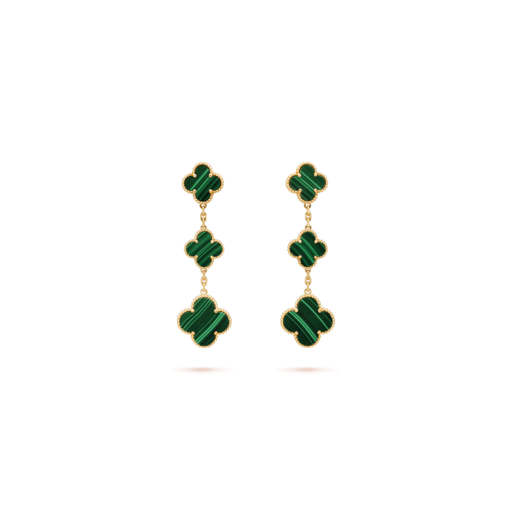 Magic Alhambra earrings, 3 motifs, yellow gold, malachite.